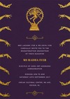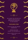 Lord Nataraja bordered on either side by various hasta mudras, gold ink on plain background.