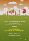 A picturesque, grassy patch of land, extending as far as the eye can see, on a bright and sunny day, has got to be the ideal and most inviting sign for a picnic. Next time you do indulge, Inytes.com has the perfect Garden Picnic Invitation for you to send to your guests, to help you manage your RSVPs and assured attendees lists. Featuring the most important elements of a picnic, such as the table spread of fine eats and other delectables, not to mention a barbecue grill, if that is how you like