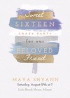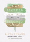 Unforgettable is the sixteenth year of most of our lives. However, how much attention was paid when we were celebrating this crucial year of existence? Let's not repeat this mistake with your son or daughter, and to ensure this, please try this Sweet Sixteen Modern India invitation on for size to invite your child's nearest and dearest to this eventuful and really, monumentally important celebration of his or her life. This online invitation has several swathes of color to highlight the text wri